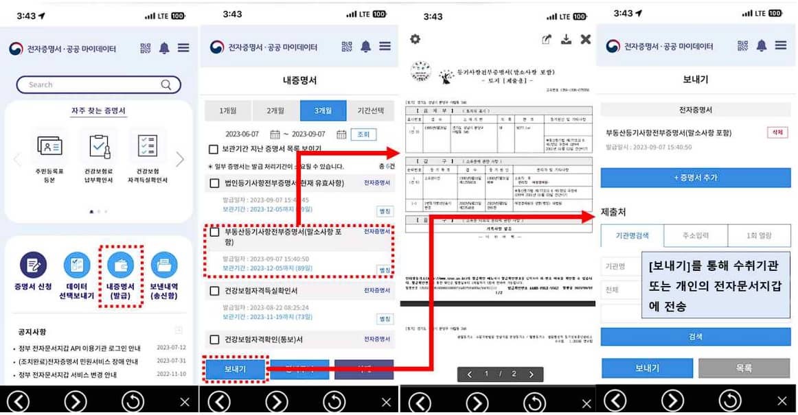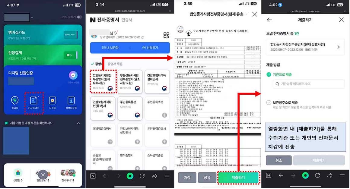 아래는 네이버를 통한 전자증명서 전자발급 후 기관으로 제출하는 방법입니다.